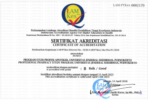 Program Studi Pendidikan Profesi Apoteker (PSPPA) Unsoed berada di bawah Jurusan Farmasi Fakultas Ilmu-Ilmu Kesehatan (FIKes). Sejarah pendirian dimulai dari tahun 2015. Pada bulan Oktober tahun 2015, Ikatan Apoteker Indonesia dan Asosiasi Pendidikan Tinggi Farmasi Indonesia (APTFI) memberikan rekomendasi untuk pendirian program ini. Rekomendasi diberikan setelah Jurusan Farmasi dinyatakan terakreditasi B pada tanggal 7 Desember 2014 Berdasarkan Surat Keputusan No.462/SK/BAN-PT/Akred/S/XII/2014. dengan demikian, Jurusan Farmasi memenuhi syarat untuk mengajukan pendirian dan menyelenggarakan Program Studi Profesi Apoteker (PSPA) Unsoed. | Dr.rer.nat. apt. Harwoko, M.Sc Koordinator Program Studi Profesi Apoteker |