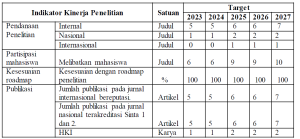 Tabel Indikator Kinerja Penelitian Jurusan Farmasi