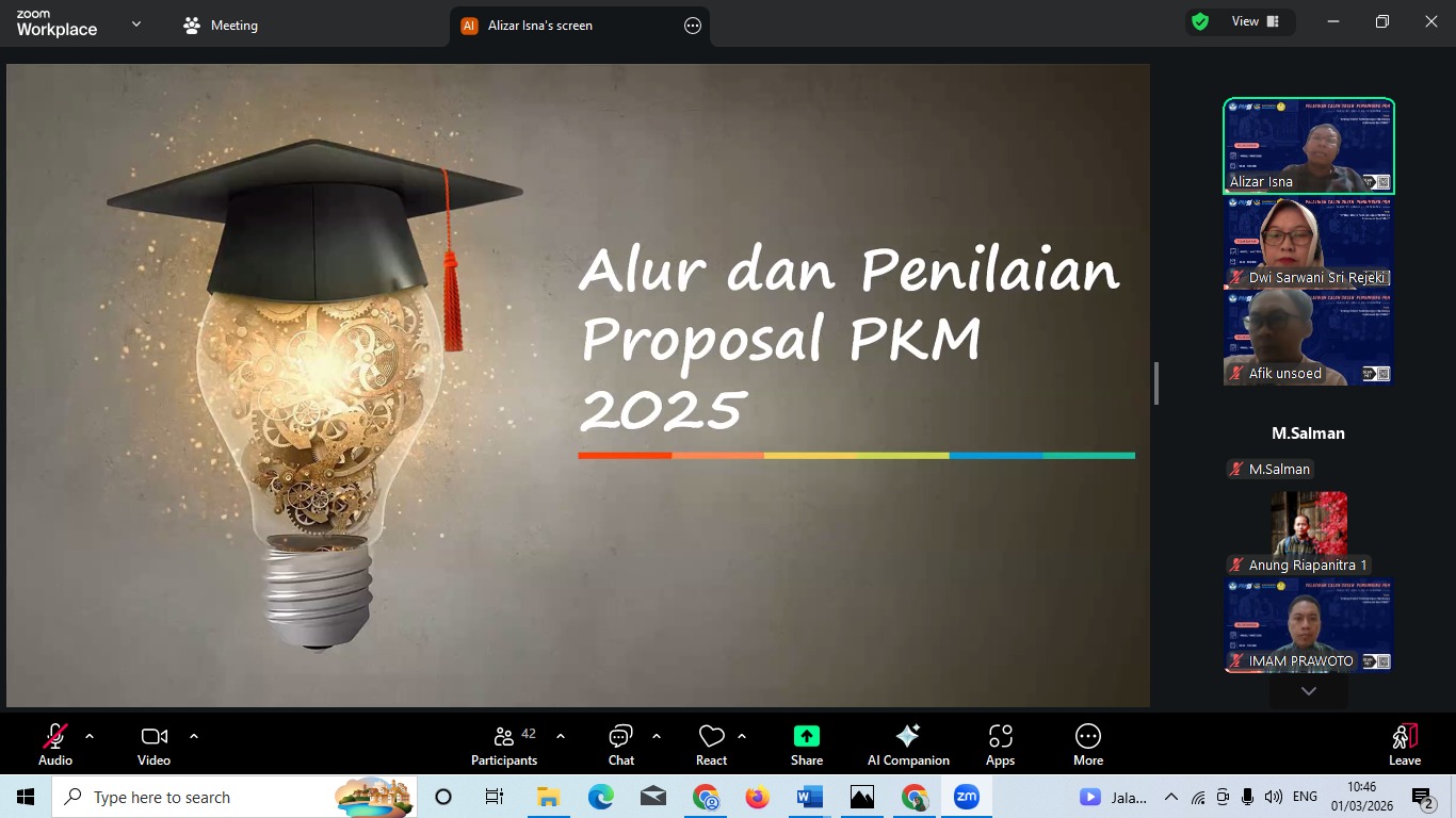 Purwokerto – Fakultas Ilmu-Ilmu Kesehatan (FIKes) Universitas Jenderal Soedirman (UNSOED) telah sukses menyelenggarakan Pelatihan Calon Dosen Pembimbing Program Kreativitas Mahasiswa (PKM) Tahun 2026 pada Minggu, 1 Maret 2026 secara...
